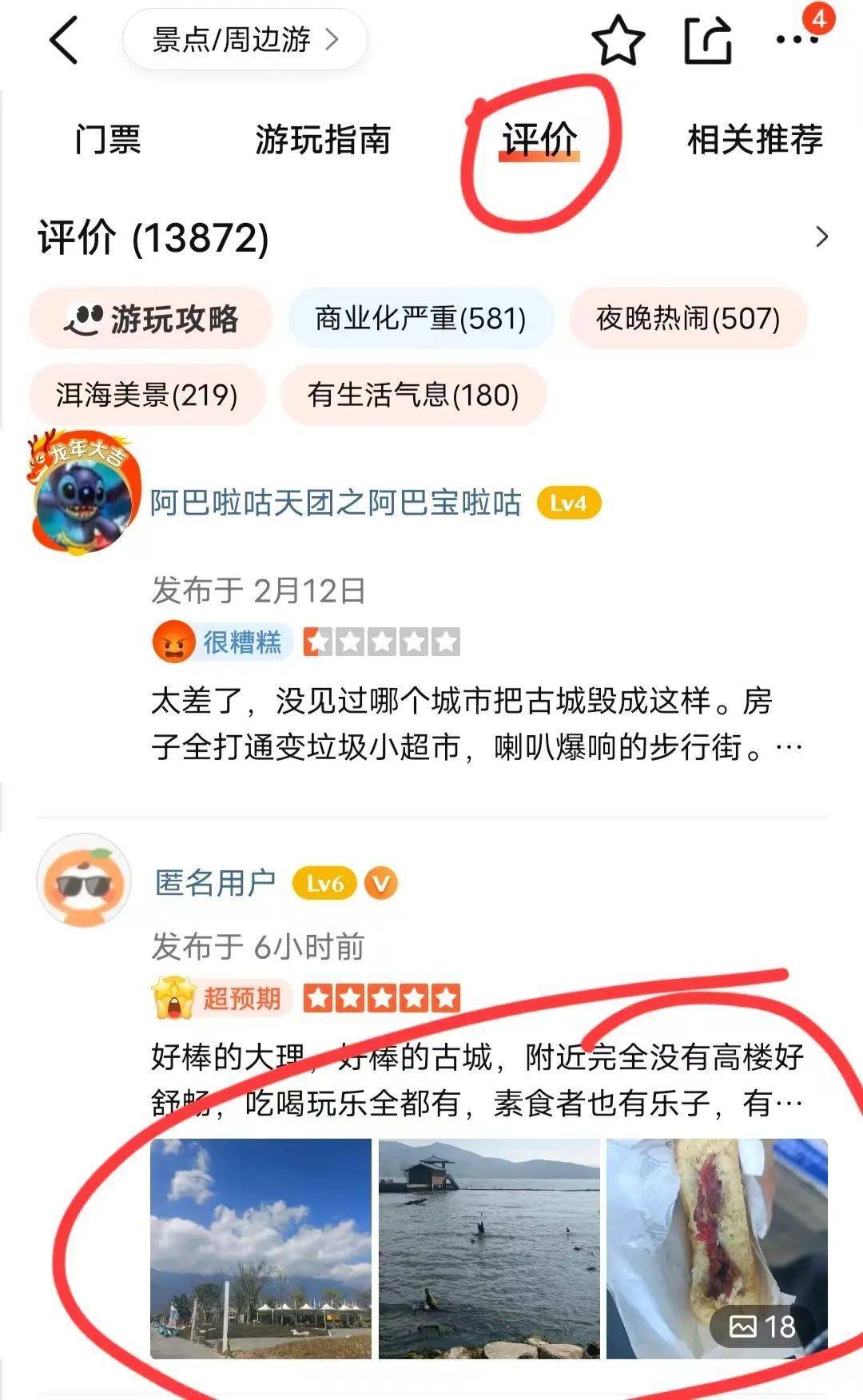 比如说,你想在高德地图上评论大理古城,那就在大众点评上搜索大理古城,找到相关的评论和照片,记得选那些不是很常见的评论,以避免内容重复。然后复制评论内容,截取没有水印的图片,再回到高德地图上粘贴就完成了。