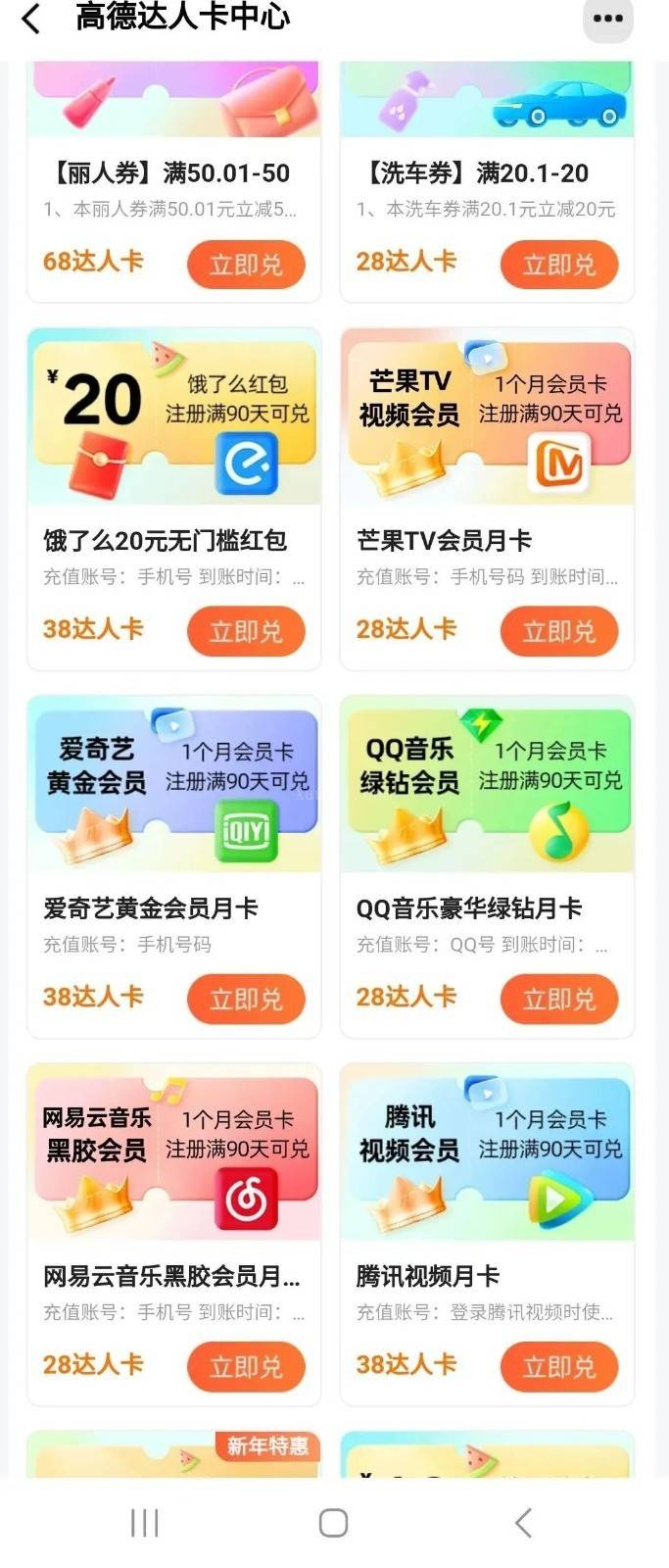 一条优质评论可以获得10张达人卡,点击福利兑换可以兑换很多优惠券和会员。